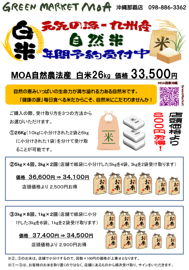 化学合成農薬や除草剤、化学肥料を一切使わずに栽培された九州産のMOA自然農法米がお安くお買い求めいただけます!